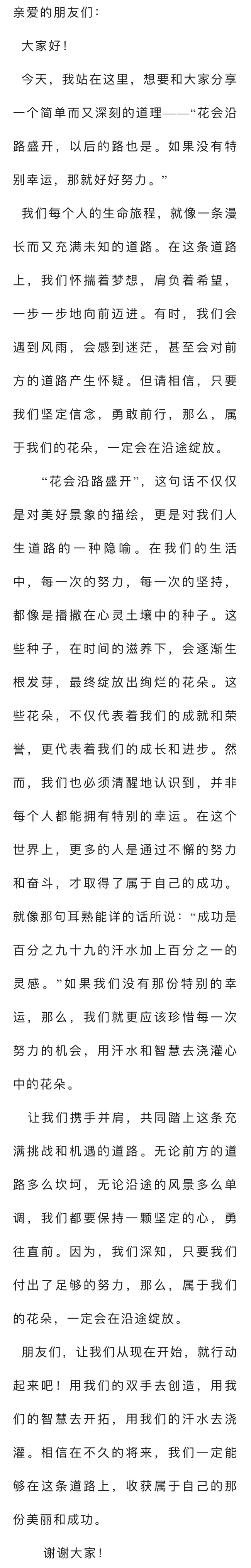 演講稿:花開路上,努力前行